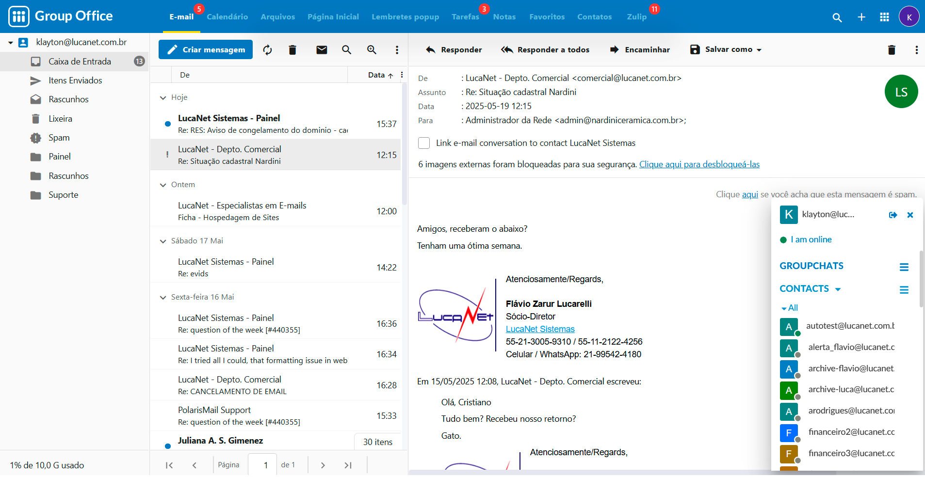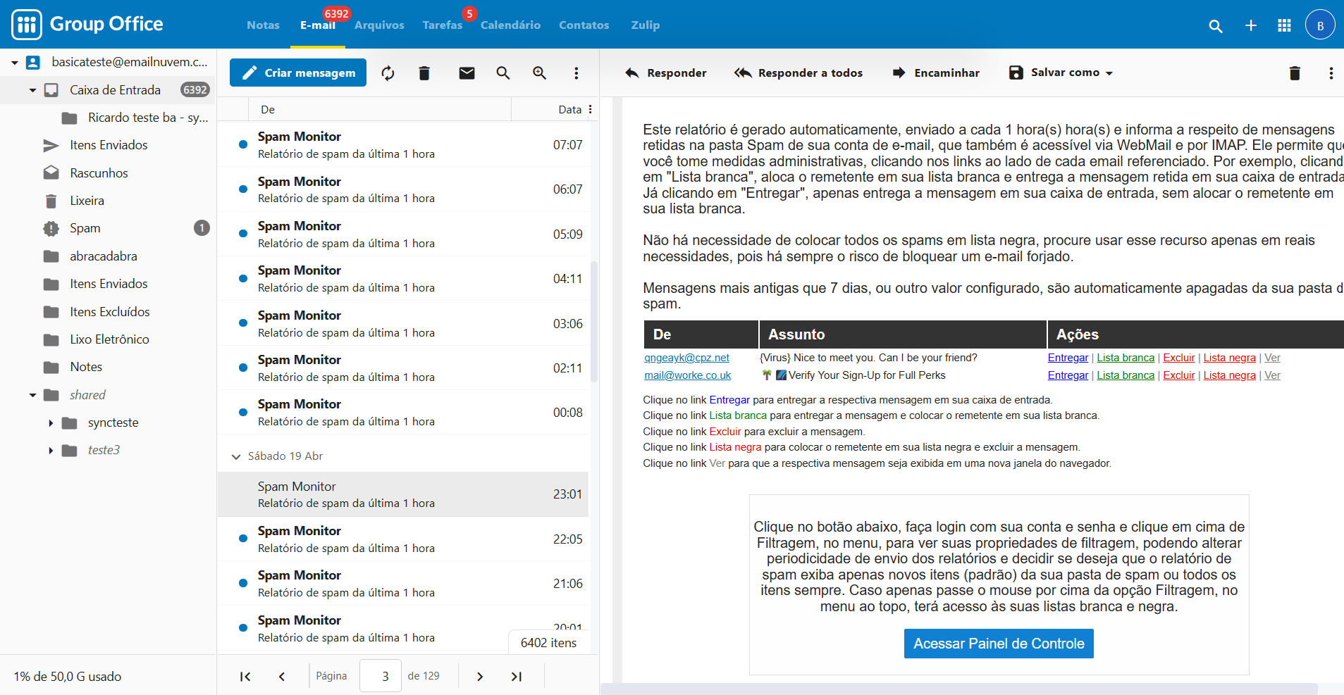 Comprove todos os recursos testando nosso WebMail diferenciado, com visual e recursos superiores aos webmails usuais do mercado. WebMail Group Office - usuário demo e senha Demo123@